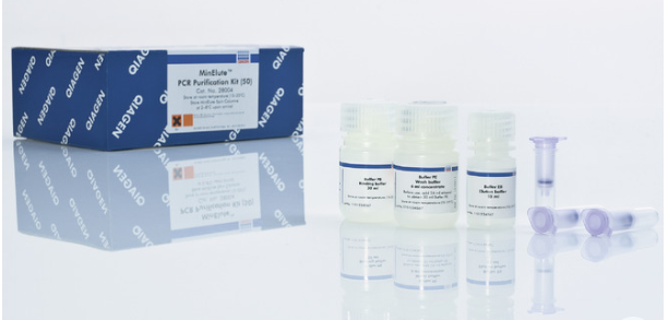MinElute PCR Purification Kit含有離心柱,緩沖液和收集管,利用硅膠膜技術(shù)純化得到70 bp到4 kb的PCR產(chǎn)物。特殊設(shè)計(jì)的離心柱可將DNA洗脫至非常小的體積(10 μl),獲得高產(chǎn)、高度濃縮的DNA。通過(guò)內(nèi)置的pH指示劑可簡(jiǎn)單確定DNA結(jié)合到離心柱的最佳pH值。實(shí)驗(yàn)可在QIAcube全自動(dòng)核酸純化儀上全自動(dòng)運(yùn)行。